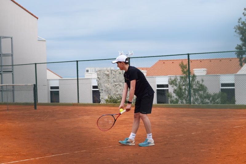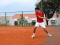 Auf dem Tennis-Court wurde Tom zusammen mit seinem Trainingspartner Melos von Coach Darko erwartet. Zuerst wurde heute Aufschlag geübt und dabei besonders am Ballwurf gefeilt. Danach gab es wieder Rhythmusübungen von der Grundlinie. "Don`t jump" - immer und immer wieder machte Darko Tom darauf aufmerksam, dass er beim Schlag nicht springen, sondern auf dem Boden stehen bleiben soll. So behält er besser die Balance und die Kontrolle. Zusammen mit der Aufforderung "Move!" werden die ersten Erfolge tatsächlich sichtbar. Die einfachen, aber gezielten Anweisungen tragen Früchte, auch wenn die Beine und auch der Kopf spürbar müder wurden. Dennoch gaben wieder alle Kids auf allen Pätzen Vollgas.