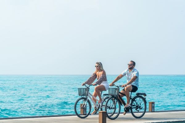 Racketsport-Fans können sich auf dem Padel-Court oder dem Pickleballplatz austoben. Auch Golf-Liebhaber können auf der Privatinsel ihrem Lieblingssport im Kleinen nachgehen: ein 5-Loch Putting Green sowie zwei Golfsimulatoren stehen bereit. Ein halber Basketballplatz, ein Beachvolleyball, Tischtennisplatten und vieles mehr sorgen für Abwechslung. Das große und sehr gut ausgestattete Gym bietet euch verschiedenste Kraft- und Cardiogeräte, die euch zum Schwitzen bringen. Ruhig geht es bei den Yoga-Classes (kostenpflichtig) zu, die von einem Yoga-Experten individuell oder in der Gruppe angeboten werden. Natürlich ist absolute Highlight der Insel die gigantische Unterwasserwelt. Schnorchelt direkt an den der Insel vorgelagerten Hausriffen oder entdeckt mit den Guides des Meridis Dive Center und ausgestattet mit einer top Tauchausrüstung die Unterwasserwelt. Tauchausflüge werden ebenso angeboten wie Tauchkurse. Auch auf dem Wasser gibt es viel zu erleben: Wasserski, Wakeboarden, Jetski oder Kajak fahren, SUP, Wind- oder Kitesurfen und vieles mehr.
