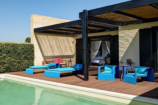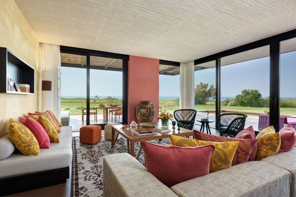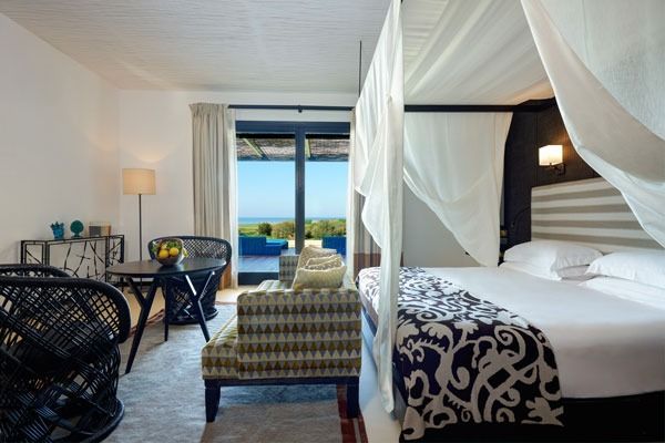 Die Zimmer und Suiten sind auf einzelne, maximal zweigeschossige modern und in kubischer Form gestalteten Gebäude verteilt und schmiegen sich perfekt in die Natur ein. So habt ihr die Wahl zwischen 168 Zimmer und 35 Suiten. Dabei gibt es pro Kategorie unterschiedliche Ausstattungen. Selbstverständlich gibt es auch Familienzimmer und -Suiten. Egal welchen Zimmertyp ihr für euch wählt: euch erwarten wirklich großzügige Räumlichkeiten, sehr stilvoll und schick eingerichtet. Das absolute Highlight sind die Terrassen bzw. Balkone, von denen ihr das Gefühl habt, direkt mit der Natur und dem Meer verbunden zu sein.